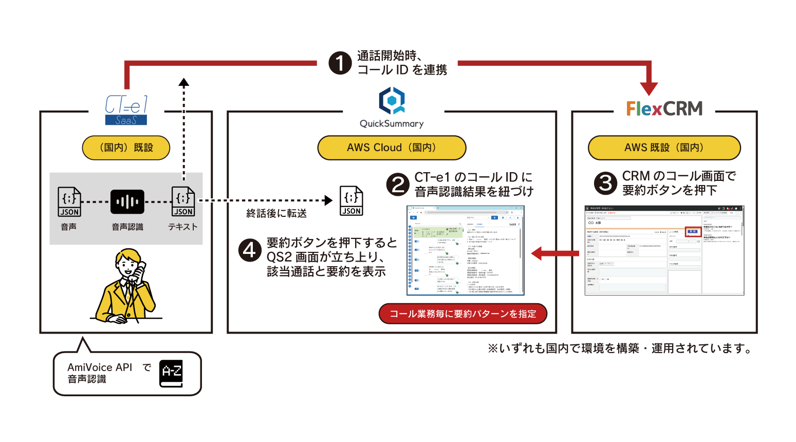 ほぼリアルタイム(後処理時間中)での要約実現が可能となり、短期間でFlexCRMや既存システムとの連携も整備されました。