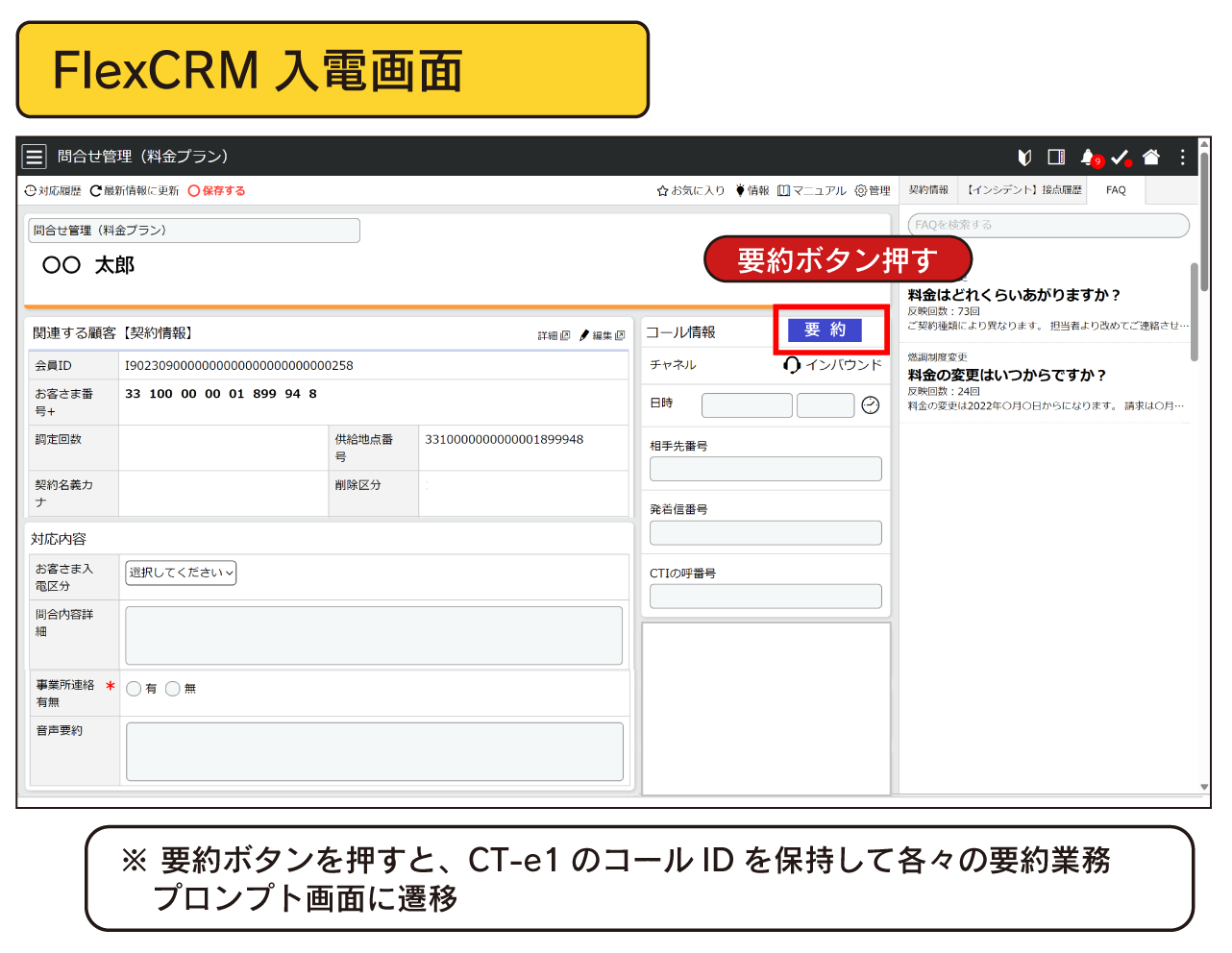 • CT-e1/SaaSのセッションID(コールID)でFlexCRM、QuickSummaryのデータを紐づけて管理