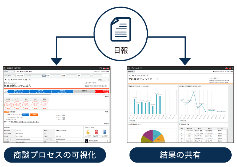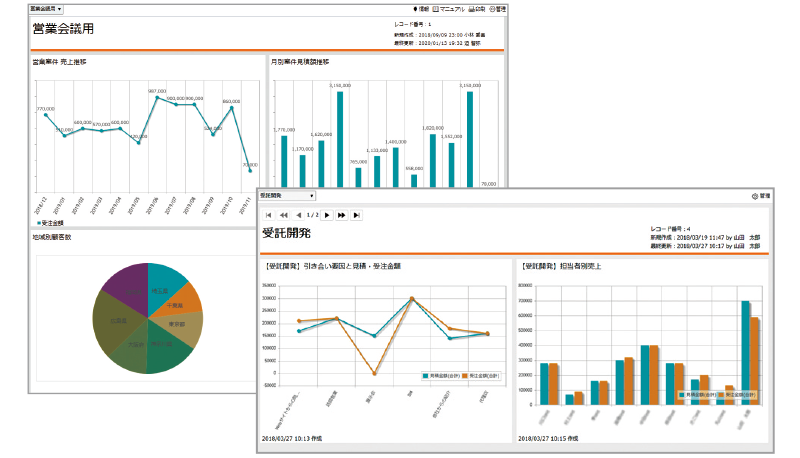 *営業部門:顧客情報の一元管理と案件進捗の可視化により、営業活動の効率がアップ。