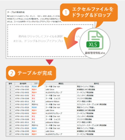Excelファイルなどで作っているデータがあるなら、ドラッグ&ドロップで簡単にデータがつくれます。