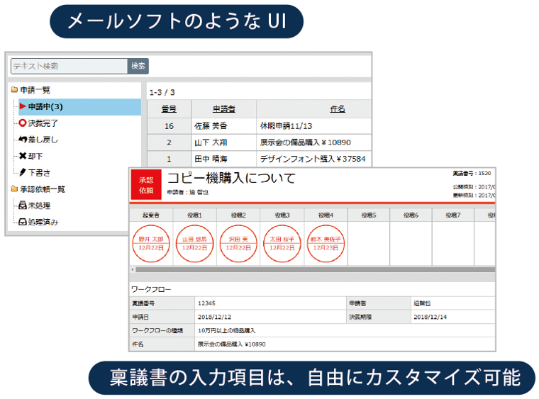 社内承認プロセスを効率化し、場所に関係なく承認を可能に。柔軟な承認フローに対応し、業務をスムーズに進行させます。