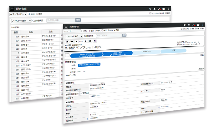 あらゆる業種の法人営業における詳細な顧客情報管理、案件管理、日報形式での各種データの登録、