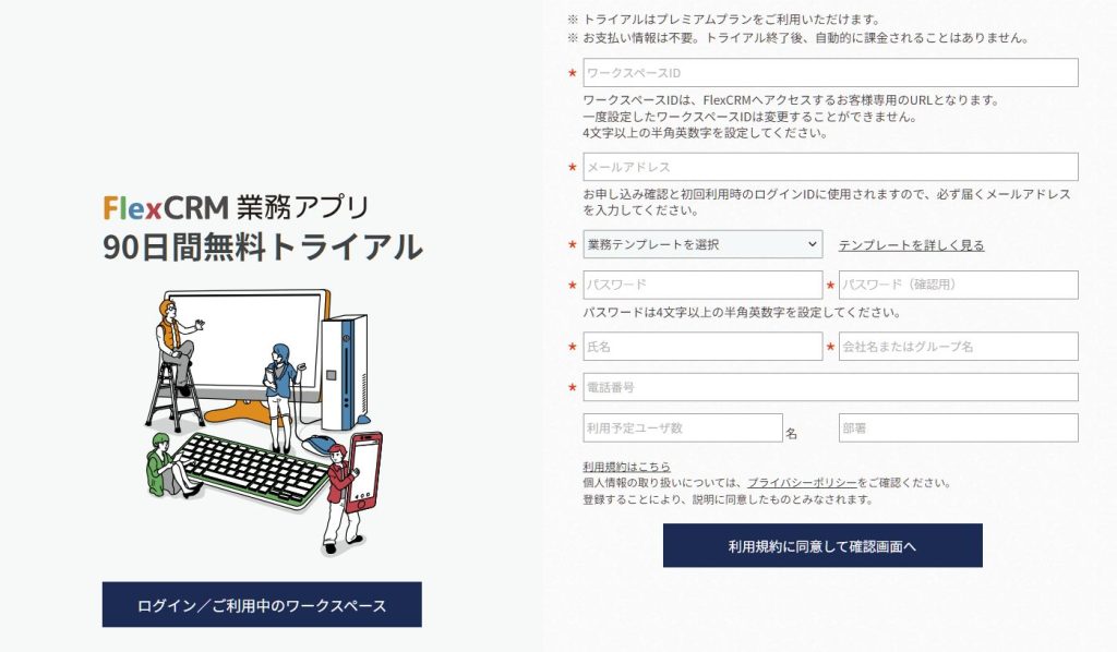 - FlexCRMの90日間無料トライアルの申し込み手順