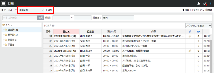 部署ごとに日報を出す仕組みも簡単に導入できます。