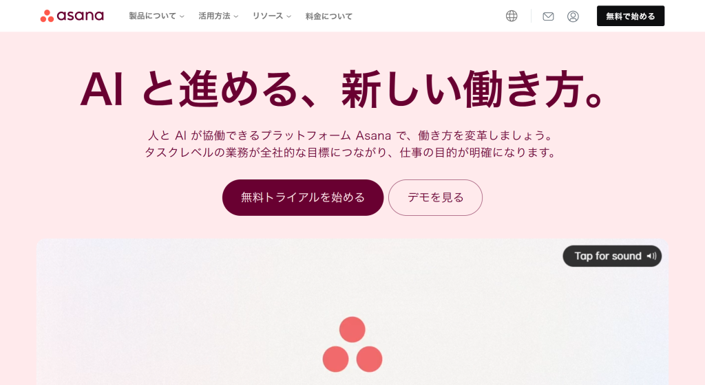 洗練されたUIと直感的な操作性が特徴で、世界中の多くの企業で導入されているタスク・プロジェクト管理ツールです。カンバンボードやタイムライン(ガントチャート)、カレンダーなど、プロジェクトの特性に合わせて最適な表示方法を選べます。タスク間の依存関係を明確にし、チーム全体の作業の流れをスムーズにしたいマーケティング部門や開発チームに特に人気があります。個人のタスクリストからチーム全体のポートフォリオ管理まで、幅広いレベルでのプロセス可視化を実現します。