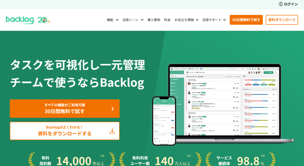 日本の株式会社ヌーラボが開発・提供する、国内シェアNo.1のプロジェクト管理ツールです。特にソフトウェア開発の現場で絶大な支持を得ており、エンジニアと非エンジニア(ディレクターやデザイナーなど)が円滑に連携し、開発プロセスを管理したいチームに最適です。課題(タスク)管理を中心に、Git/Subversionといったバージョン管理システムとの連携や、バグ管理システム(BTS)としての機能も充実。シンプルで分かりやすいインターフェースは、ITに不慣れなメンバーでも安心して利用できます。