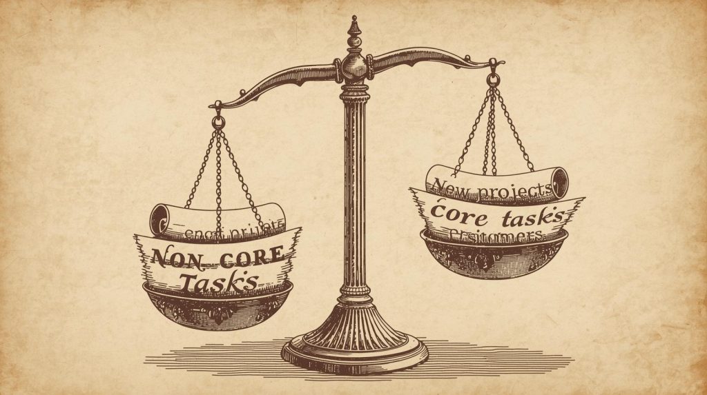 企業の業務には、売上に直結しにくいものの、組織運営に必要な「ノンコア業務」が存在します。(例:事務処理、経費精算、会議準備など) これらに時間と労力を奪われすぎると、企業は成長のスピードを落としてしまいます。いわば、成長の「ブレーキ」となっている状態です。